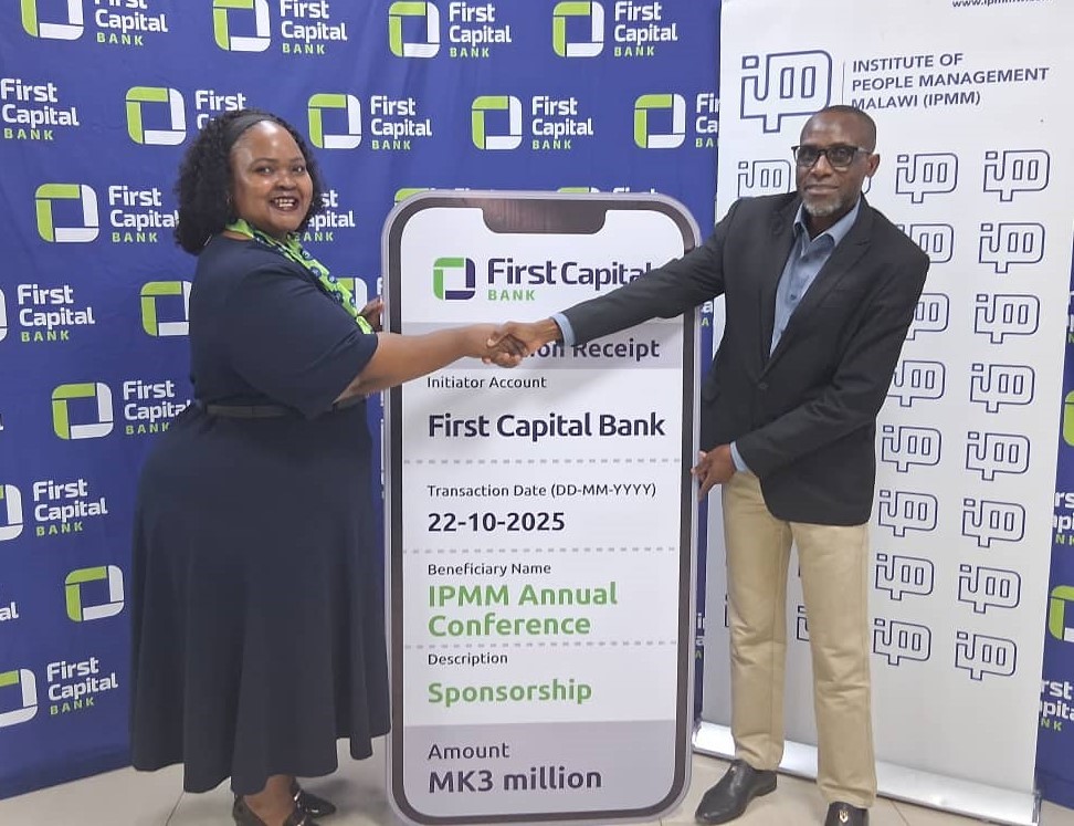 Listed First Capital Bank (FCB) has extended financial support amounting to K3 million to the Institute of People Management Malawi (IPMM) ahead of its annual conference scheduled for October 23–25.