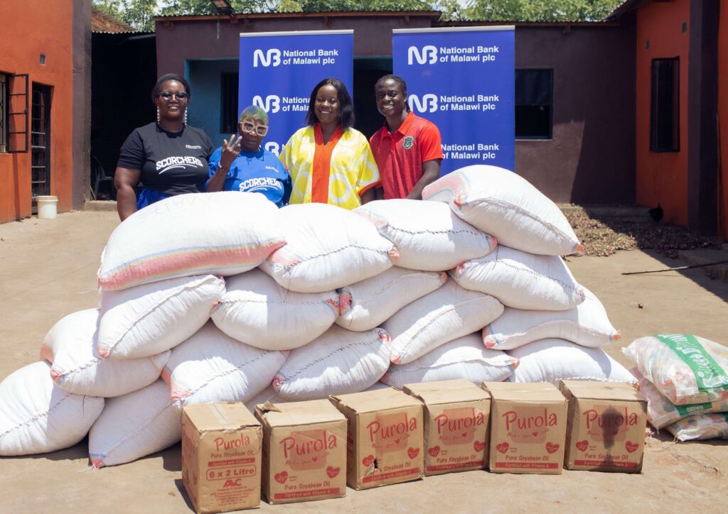 National Bank of Malawi (NBM) plc, in partnership with the Malawi National Women’s Football Team, The Scorchers, have donated assorted food items to Mai Mbambande Shelter Home for the Elderly in Lilongwe as part of the Bank’s corporate social investment (CSI) initiatives.
